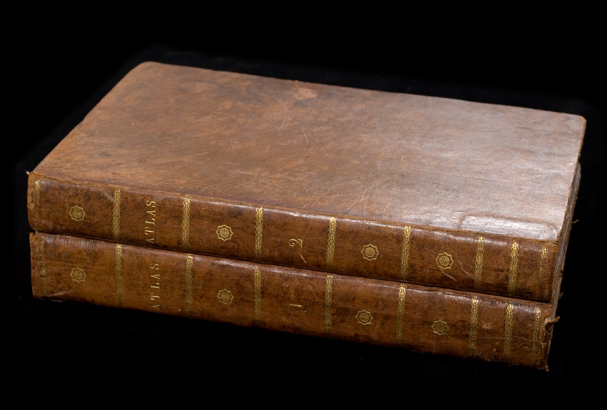 This is a rare, complete, very well preserved edition in French of the famous Mercator-Hondius-Atlas in 2 volumes. It contains 239 copper engraved maps (127 in the first and 112 in the second volume).