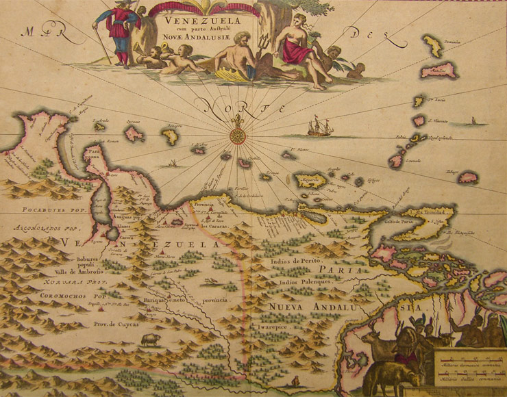 The maps offered by us are decorated by beautiful figural cartouches, the views are captivating by their vivid ornamentation with ships and local people.